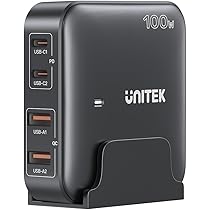 מטען שולחני GaN מהיר ‎100W‎ – ‏2×USB-C ו‏2×USB-A תומך PD3.0 / QC3.0 / PPS